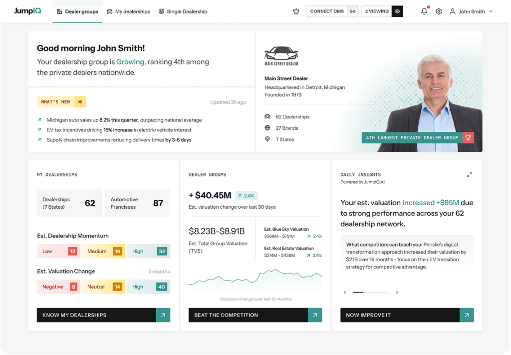 The world’s first AI-powered platform built specifically for dealership owners. JumpIQ helps you: